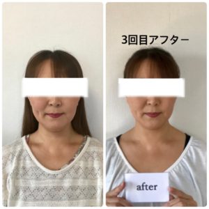 気にされていたあごの下も驚くほどスッキリ!この部分は、1回ではここまでこれませんでしたよ。2回目・3回目と回数を重ねて、どんどんあご下のふっくらが解消されたんです✨